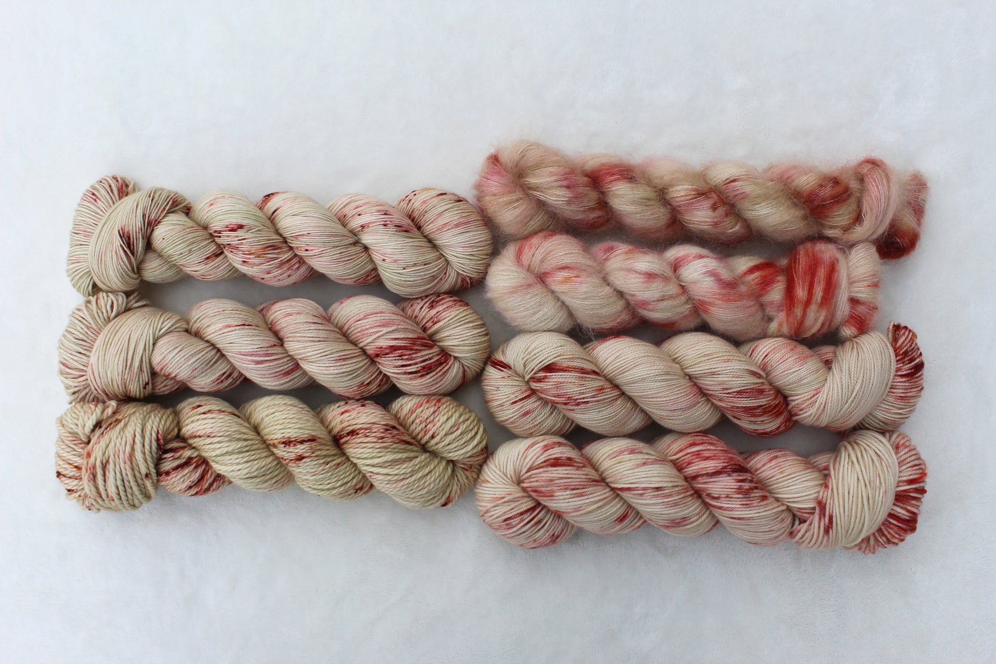 Due to the nature of hand dyed yarn, each skein is unique and may not completely match, but this is what makes hand dyed yarn so fun!