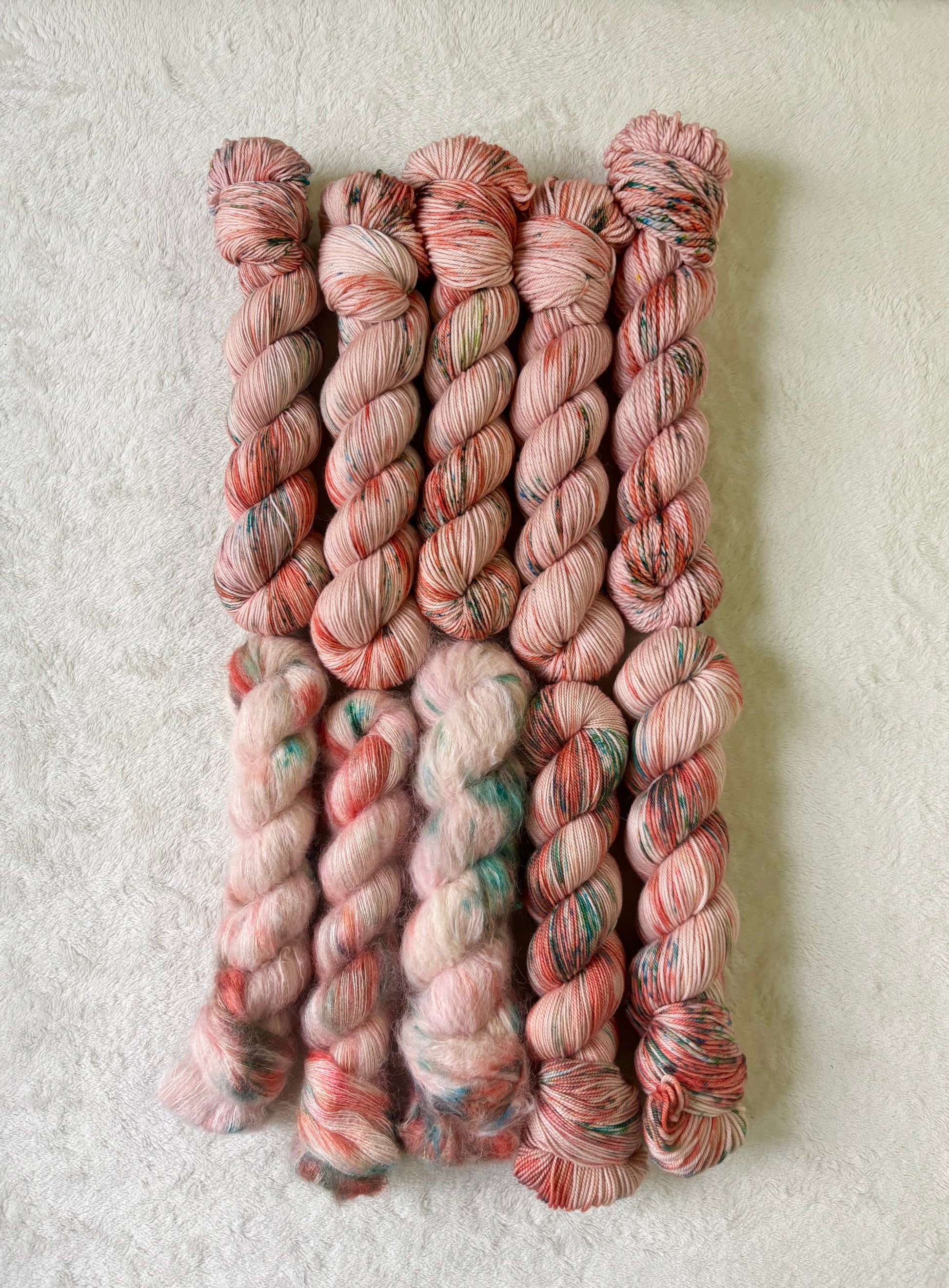 Due to the nature of hand dyed yarn, each skein is unique and may not completely match, but this is what makes hand dyed yarn so fun!
